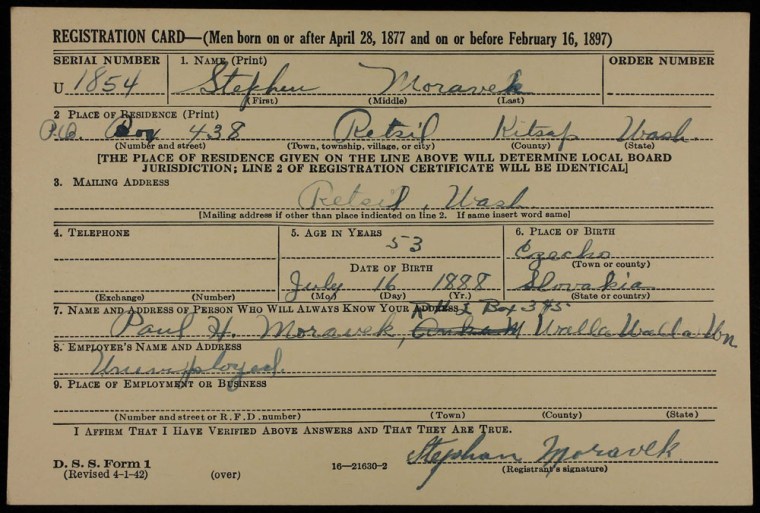 WW II registration card
