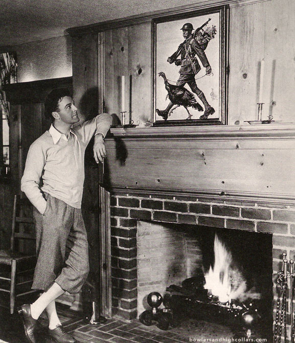 Ah, I could gush about J.C. Leyendecker’s works (and his brother’s) for eternity. While his main model was Charles Beach who was his lifelong partner, he also used other models like the actor Neil Hamilton. This is a picture of him gazing at Joe’s work above a fireplace.