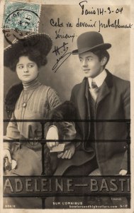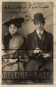 Both models were sitting on chairs, with the design of the omnibus line added later. The third has a misspelling too! But the line did exist, and if you’re curious to see what omnibus these two would have been on, here’s an image of the Madeleine-Bastille line omnibus of the era: