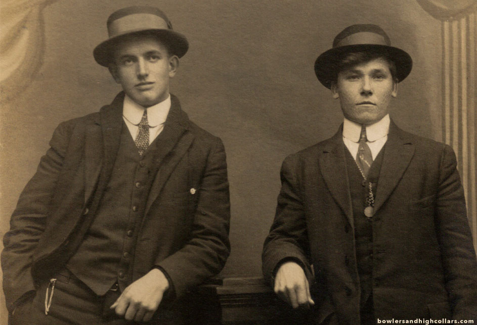 With the belt, collared shirt and thin, straight tie I’d date this portrait from the late 1910s to early ’20s (if so, it was printed on older stock).