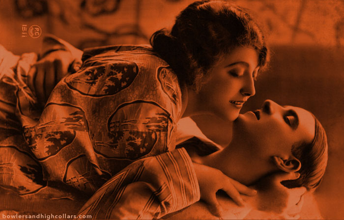 The backdrop of this postcard is so detailed I have difficulties believing it was only used for this postcard. It would be interesting to find out if it was used in an early silent.